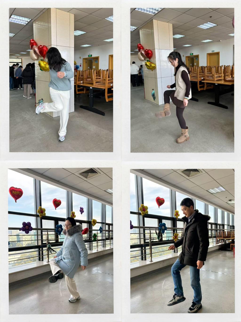 “悦动新春”踢毽子环节更是热闹非凡。五彩毽子上下翻飞,馆员们身手矫健、笑语连连,在跳跃腾挪中充分舒展身心,展现出蓬勃朝气。