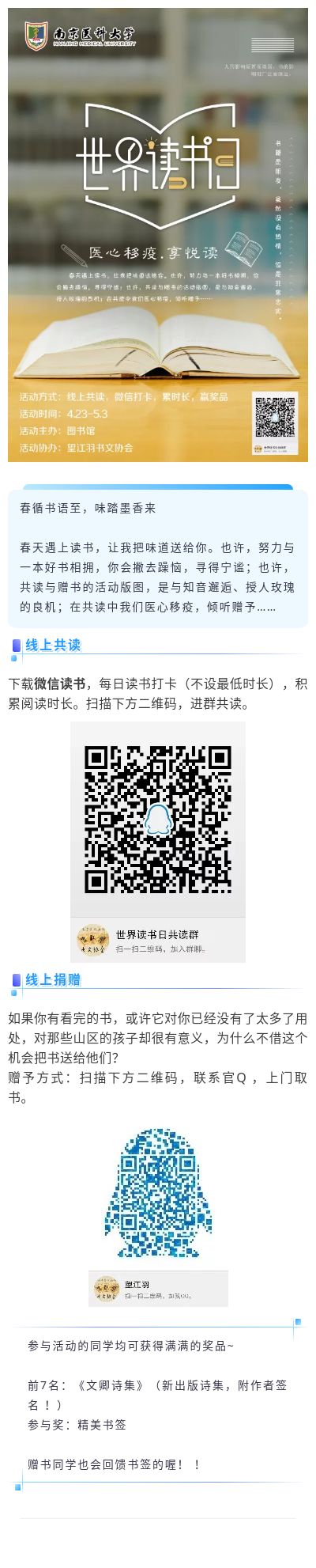 根据学校《关于2020年“五一”假期工作安排的通知》精神,按照学校疫情防控工作部署,结合图书馆工作实际,经研究决定,2020年五一节期间江宁校区图书馆继续开放。为确保安全有序,实行预约入馆、预约借还,详见“读...